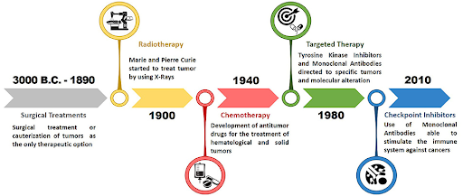 Immunotherapy has emerged as one of the most exciting advancements in cancer treatment. Unlike therapies that directly target cancer cells, immunotherapy leverages the body’s immune system to recognize and destroy malignant cells. The concept of immunotherapy dates back to the late 19th century, when William Coley observed that some cancer patients experienced tumor regression after developing bacterial infections. Based on this observation, he began experimenting by injecting streptococcal bacteria into the tumors of inoperable cancer patients, presumably to stimulate the immune system to fight the cancer. After initially using live bacteria, which at times resulted in fatal outcomes, he then developed a safer mixture of heat-killed bacteria, which became known as Coley’s toxins. Despite the promising results, his approach, which was challenging to reproduce at that time, was overshadowed by the emergence of radiotherapy and chemotherapy that produced more consistent results. This field finally gained momentum in the 1990s with the discovery of immune checkpoint proteins. The inhibitory effects of cytotoxic T-lymphocyte-associated protein 4 (CTLA-4) and programmed cell death protein 1 (PD-1) on the activation of T-cells were demonstrated by James Allison in 1995 and Tasuku Honjo in 1992, respectively. Following these breakthrough discoveries, ipilimumab, which targets CTLA-4 protein, became the first immune checkpoint inhibitor to reach the market in 2011 when it received the U.S. FDA approval for the treatment of metastatic melanoma. This was followed by the approval of pembrolizumab, a PD-1 inhibitor, in 2014 for advanced or unresectable melanoma. In 2017, pembrolizumab made history by becoming the first tumor-agnostic drug approved by the U.S. FDA. It was approved to treat any solid tumor with a specific genetic biomarker, marking a paradigm shift in cancer care. This landmark decision signified a move away from traditional treatment based on the tissue of origin, shifting the focus to the tumor’s molecular profile. In recent years, chimeric antigen receptor T-cell therapy (CAR T-cell therapy), a form of immunotherapy that involves genetically modifying a patient’s own T-cells to combat cancer more effectively, has emerged as another promising treatment option, particularly for patients with hematological malignancies. Although immunotherapy has shown remarkable success in treating advanced and previously resistant cancers, it remains a relatively new field. Further research is needed to understand why it is effective for some patients but not others. Additionally, efforts must be made to mitigate the risk of potentially life-threatening adverse events, which can occasionally accompany this form of therapy. The evolution of cancer treatment reflects the continuous advancement of medical science. From the rudimentary surgeries of ancient times to the state-of-the-art immunotherapies of today, each therapeutic approach has played a crucial role in improving patient outcomes and quality of life. While surgery, radiotherapy, and chemotherapy remain fundamental to cancer care, the rise of targeted therapy and immunotherapy marks a shift toward more personalized strategies. With on-going research and development, the next-generation of cancer therapies promises to be more precise and effective, with fewer side effects. Key innovations, such as cancer vaccines targeting tumor antigens, gene-editing technologies such as CRISPR for correcting mutations, and oncolytic virus therapy, offer new hope for transforming cancer from a once deadly disease into a more manageable, and potentially curable, disease in the near future.